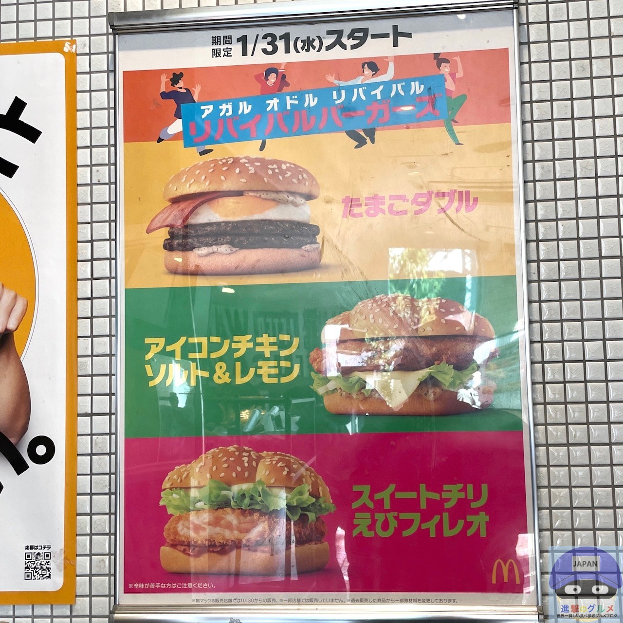 マクドナルドリバイバルバーガーズたまごダブルアイコンチキンソルト&レモンスイートチリえびフィレオ期間限定メニュー新メニュー進撃のグルメ