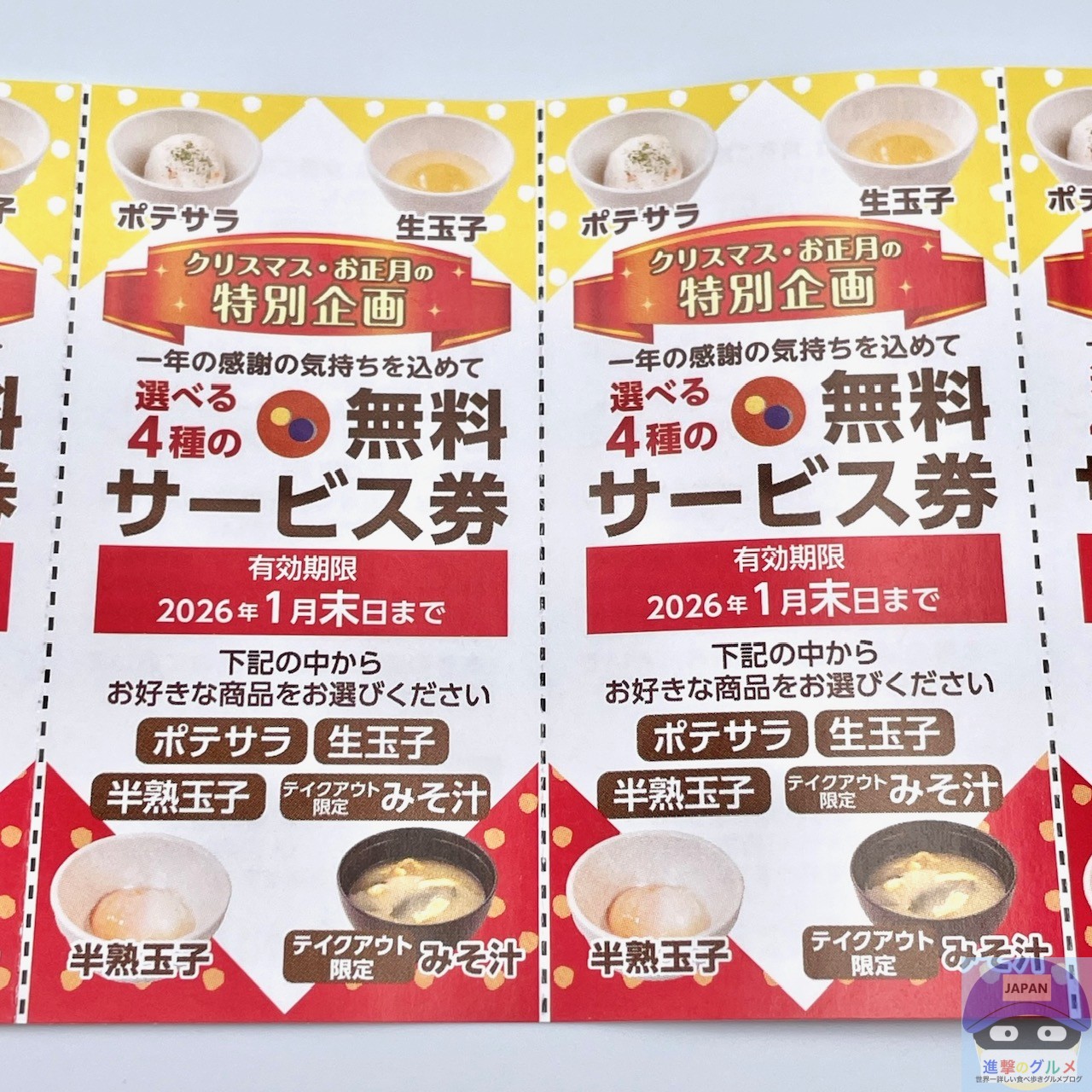松屋選べる4種のサイドメニュー無料サービス券クリスマスお正月特別企画お得クーポンキャンペーン進撃のグルメ2
