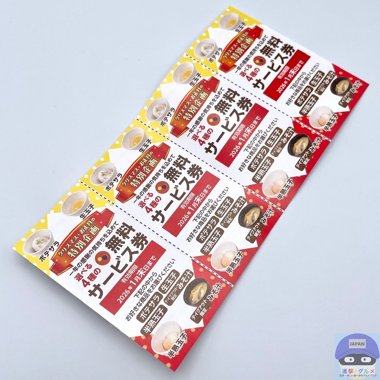 松屋選べる4種のサイドメニュー無料サービス券クリスマスお正月特別企画お得クーポンキャンペーン進撃のグルメ