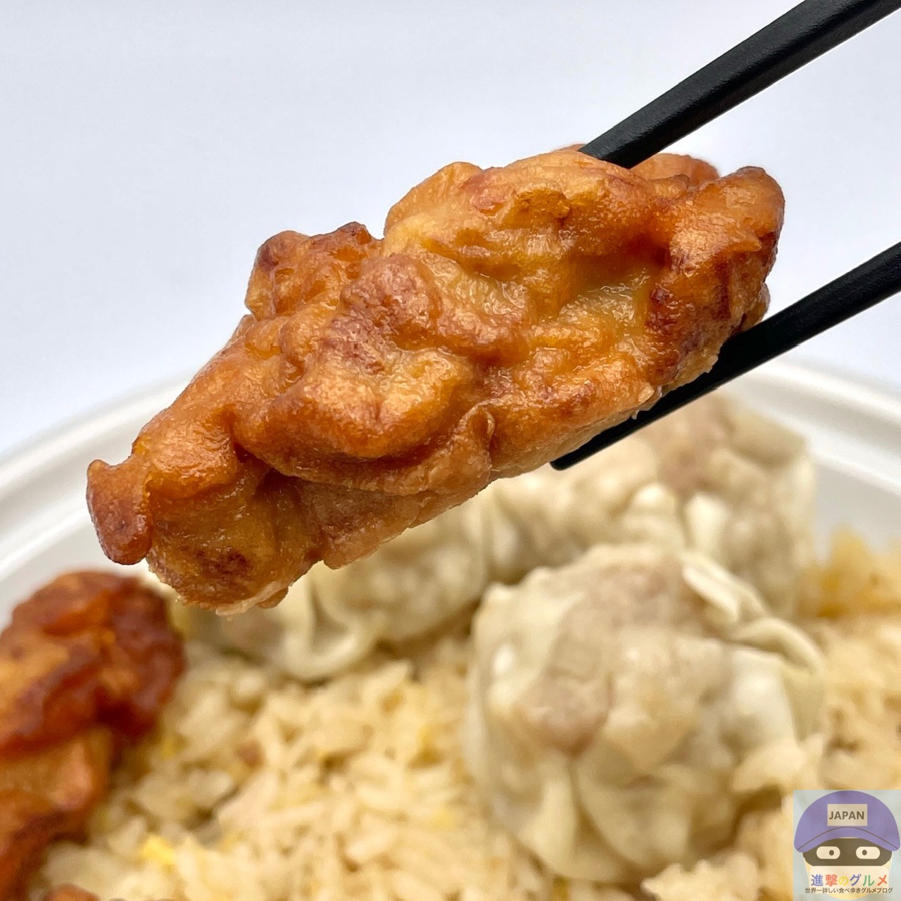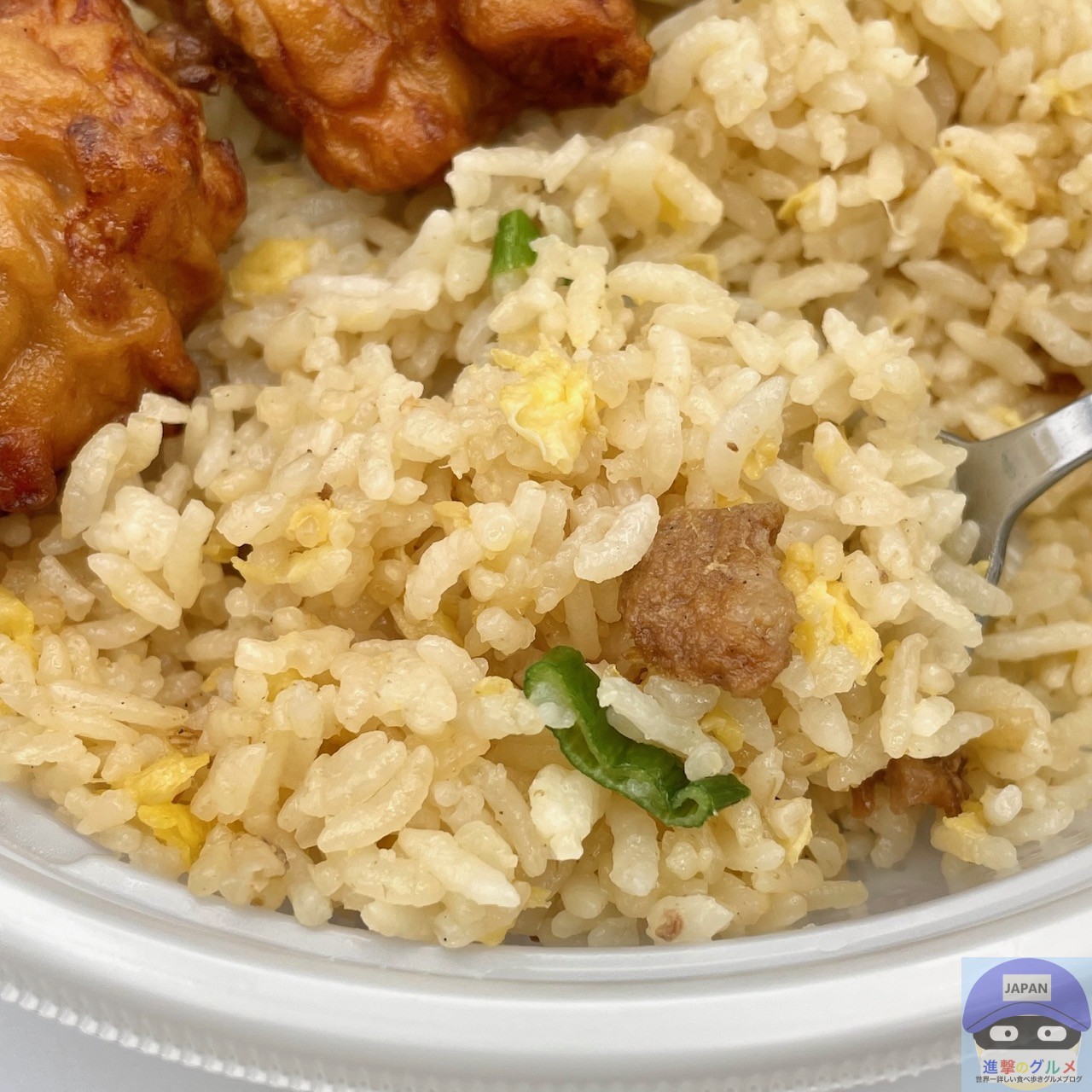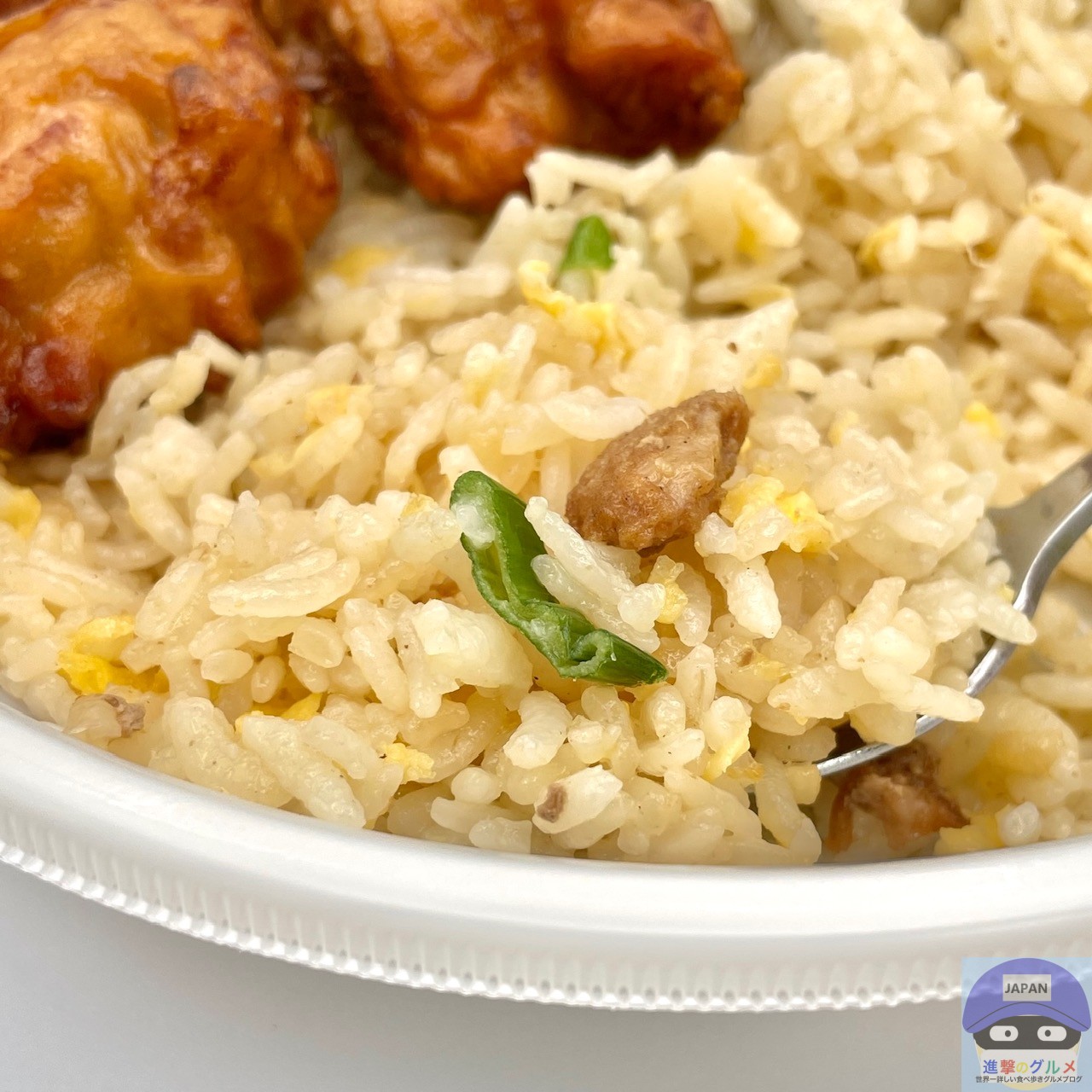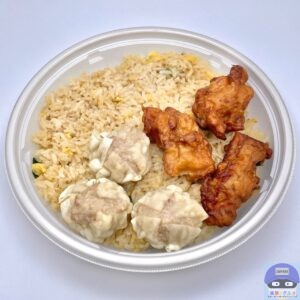 香ばしく炒めたチャーハンに焼売と唐揚げを合わせた、食欲をそそるコンビニ弁当です。