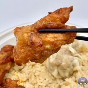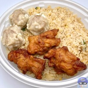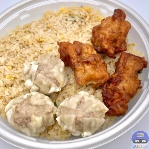 鉄鍋炒めのチャーハン、焼売3個、唐揚げ3個の組み合わせでボリュームがあります。
