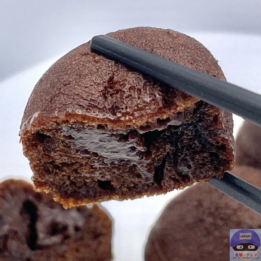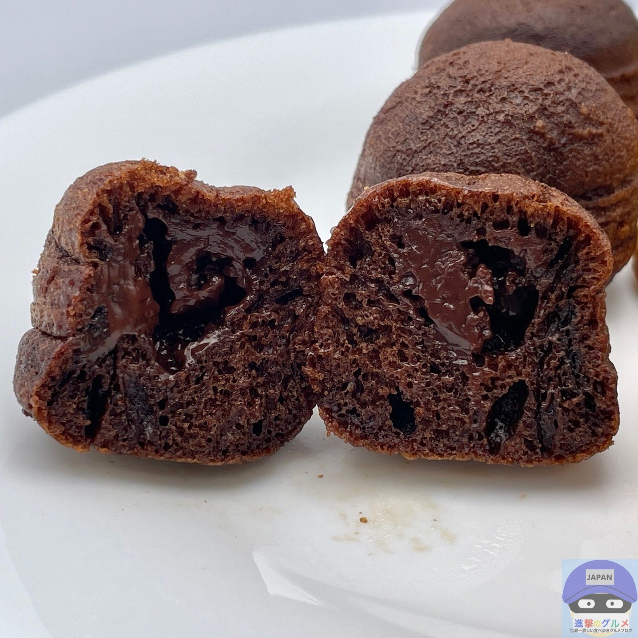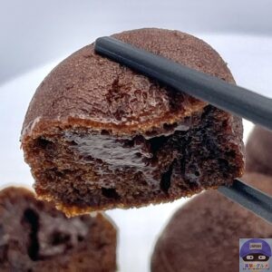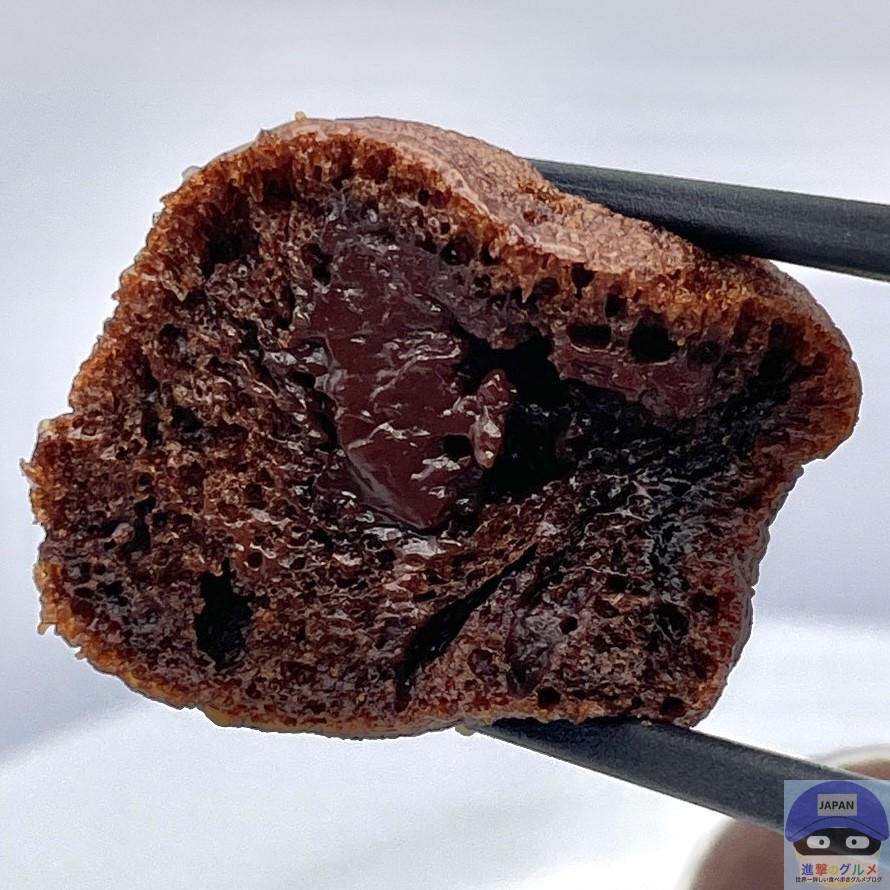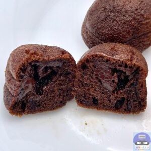 少しふんわり生地に、ややビターなショコラソースでチョコの味わいを感じ、くちどけが普通です。