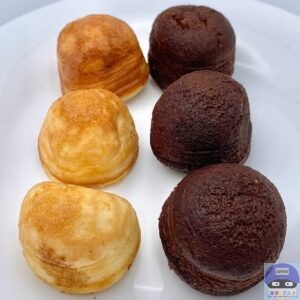 プチパンケーキが6個(ショコラ3個、メイプル3個)が入って、甘い良い香りがします。