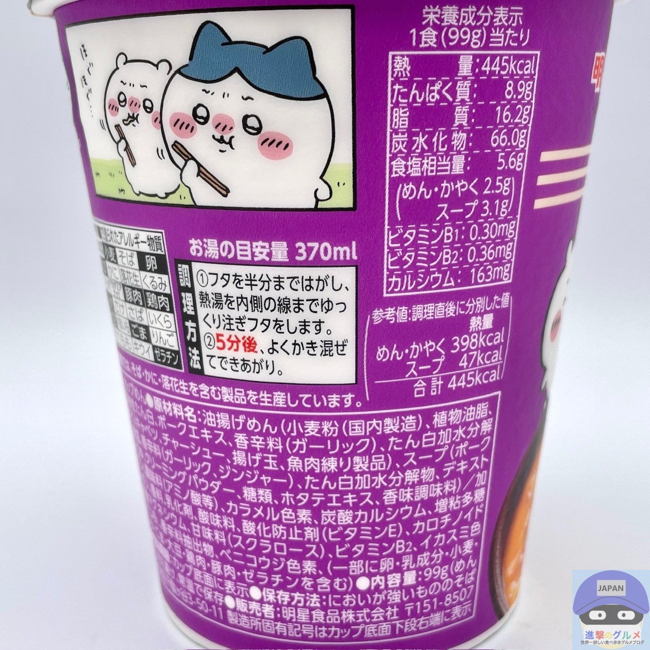 内容量は99g(めん75g)、カロリーは445kcalです。