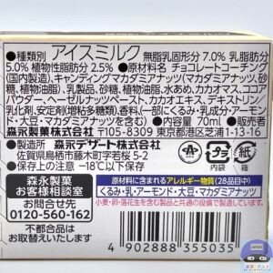 種類別はアイスミルク、内容量70ml、カロリー335kcalです。