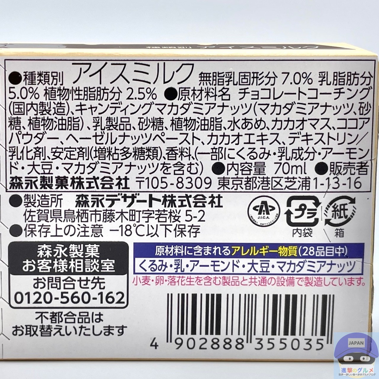 今回は、セブンイレブンの新商品「森永製菓 プレミアム板チョコアイス マカダミアナッツ」を世界一詳しく調査しました。