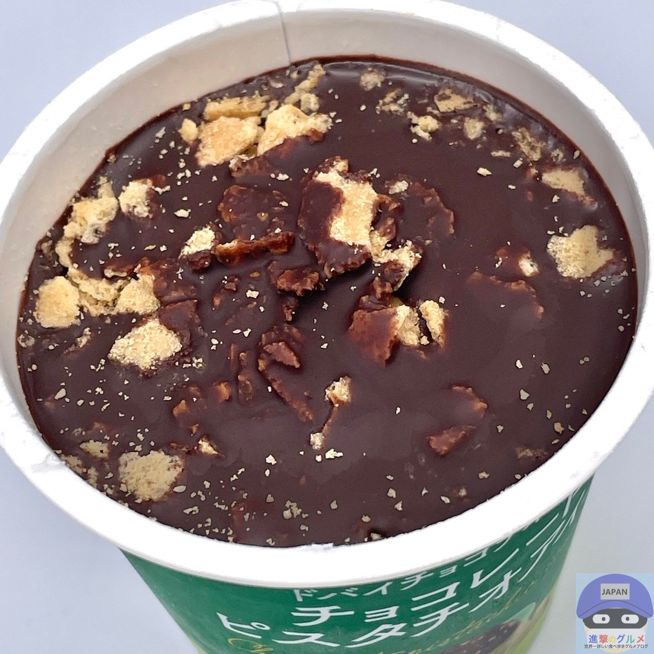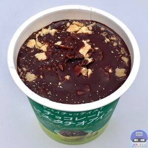ピスタチオアイスにチョコレートコーチングとワッフルクランチを合わせた、ドバイチョコテイストのカップアイスです。