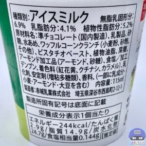 種類別はアイスミルク、内容量115ml、カロリー244kcalです。