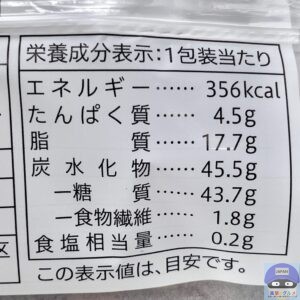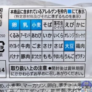 アレルギー物質表示、原材料名、栄養成分表示などです。