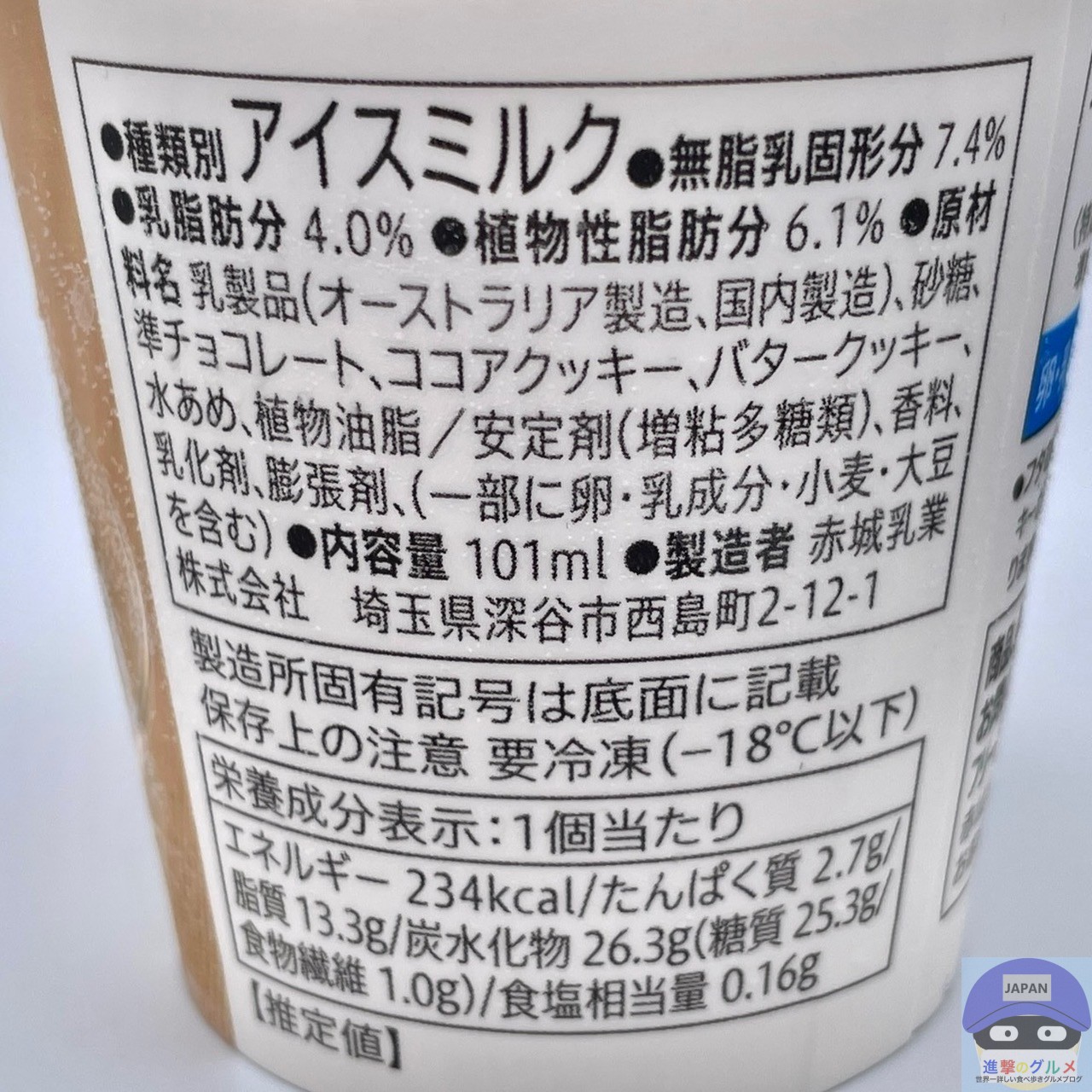 種類別はアイスミルク、内容量101ml、カロリー234kcalです。