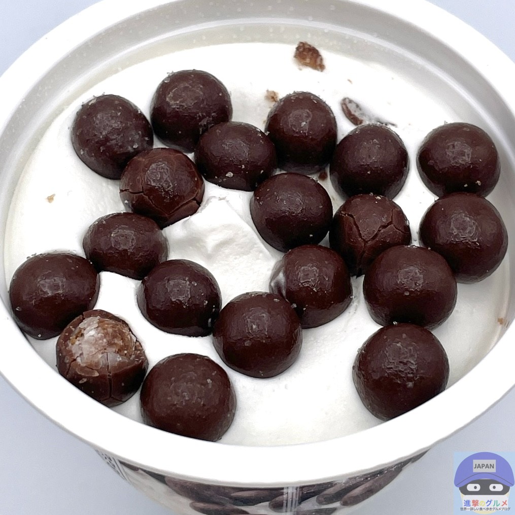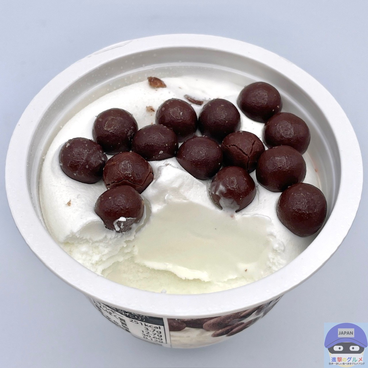 白いヨーグルトアイスにゴロゴロとしたチョコパフの見た目のインパクトがあります。