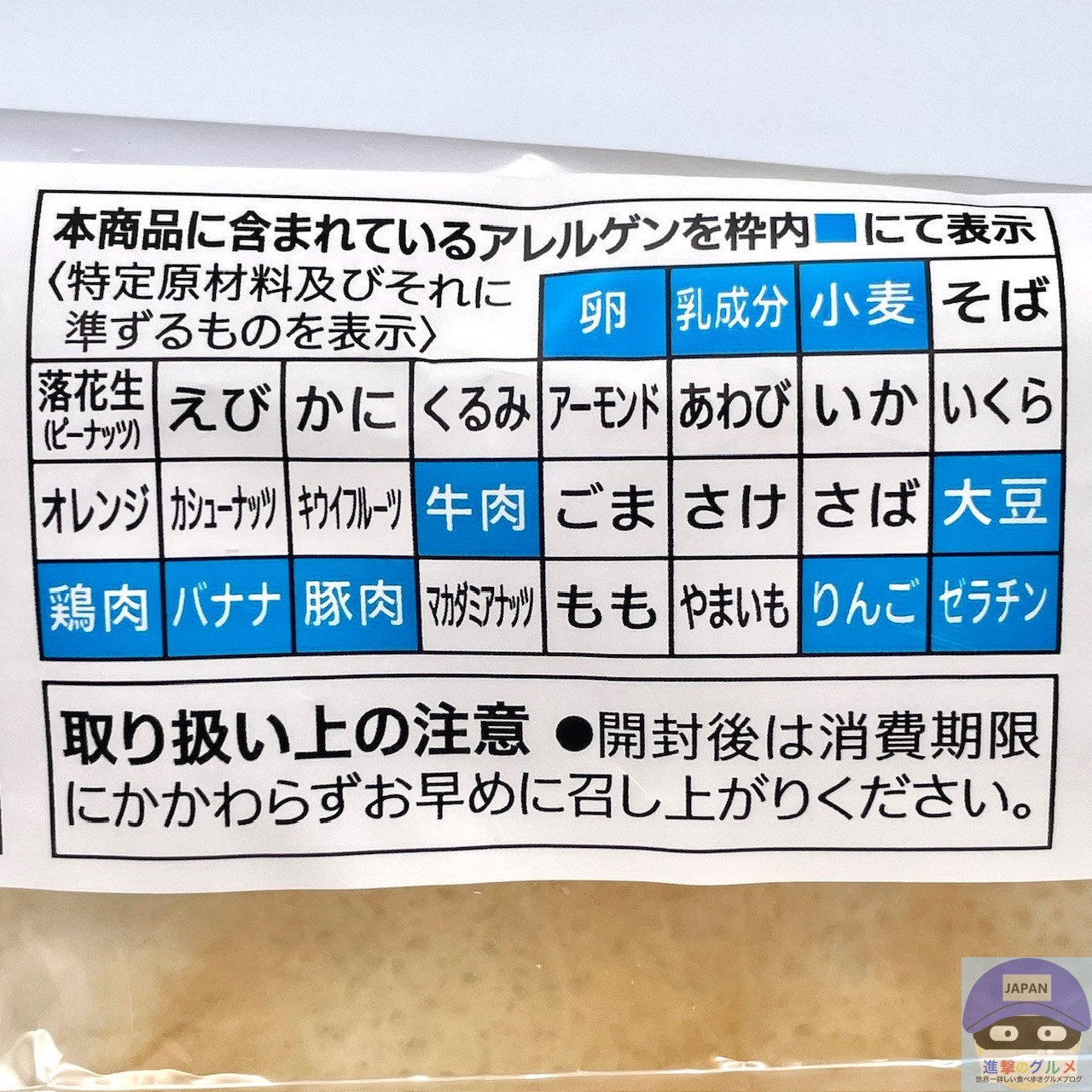 アレルギー物質表示、原材料名、栄養成分表示などです。