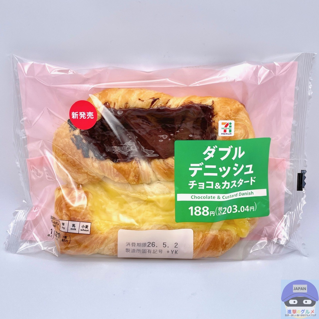 2026年4月28日、セブンイレブンが新作惣菜パン「セブンプレミアム ダブルデニッシュ チョコ&カスタード(203円)」を発売しました。