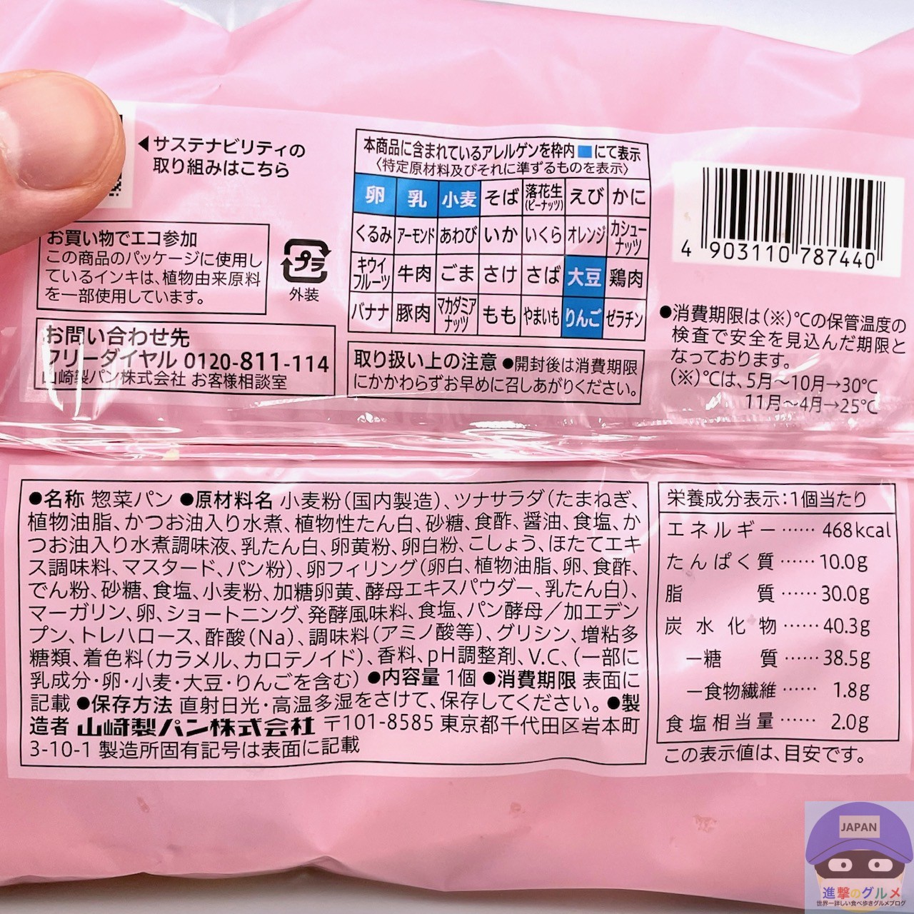 カロリーは468kcal、重さは包装を含めて131gです。