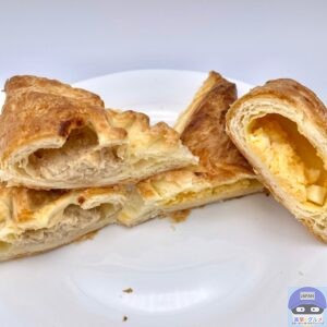 パイ生地でツナフィリングとたまごフィリングを包んで焼き上げた、2種類の味わいが楽しめるコンビニ惣菜パンです。