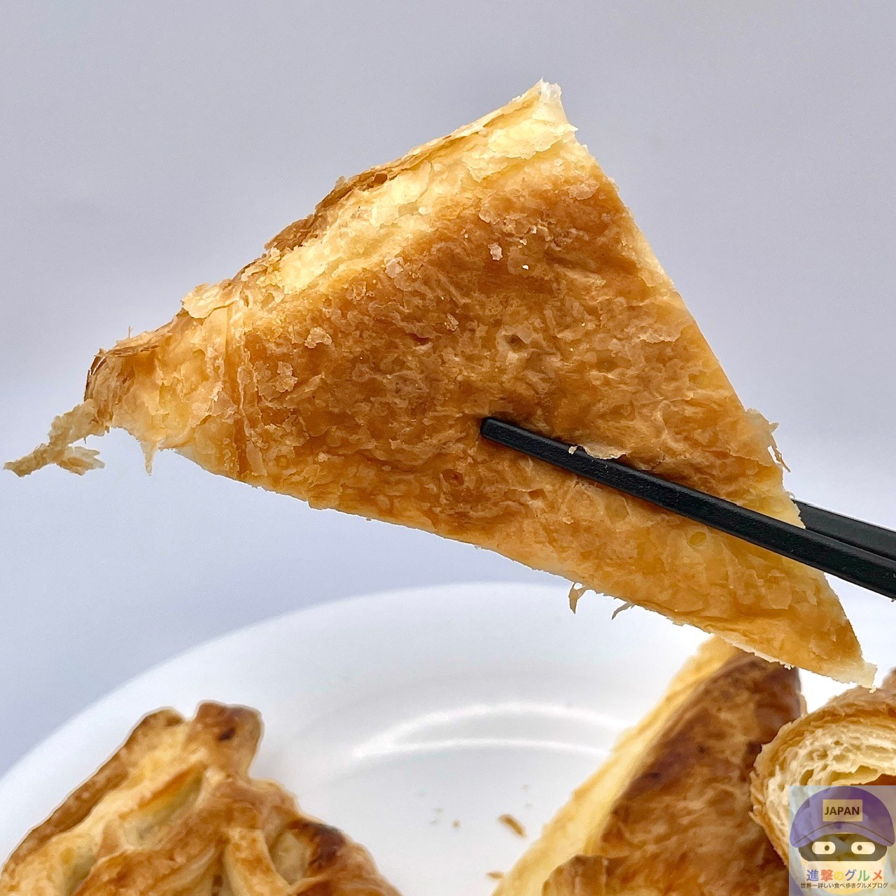 しっとりやわらかいパイ生地の味わいと風味を感じます。