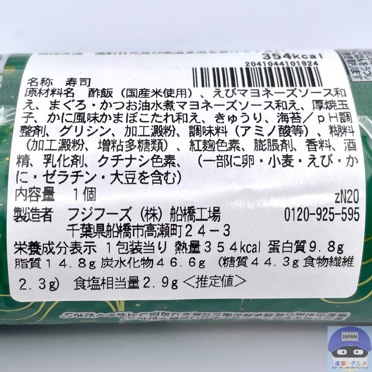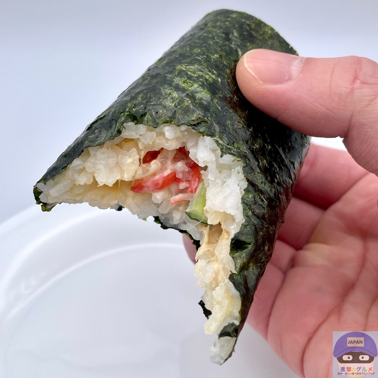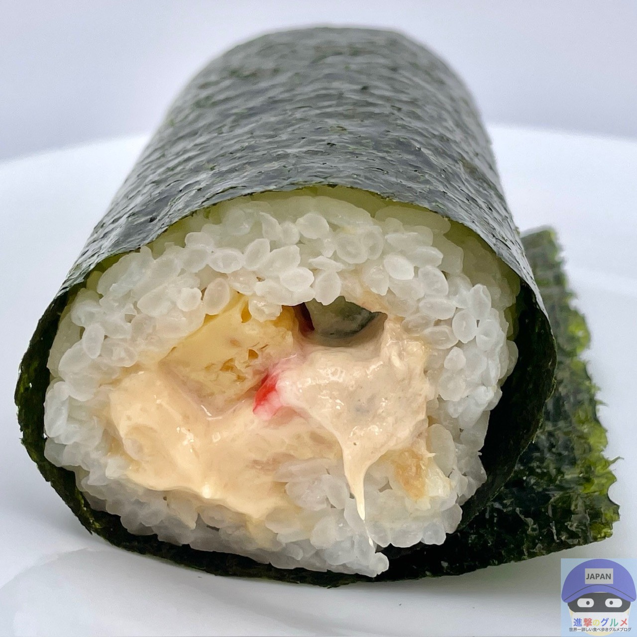 海苔の食感、酢飯やツナマヨの味わい、海老やきゅうりの食感など、コンビニ寿司の良さが合わさり、味の満足度が高いです。
