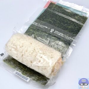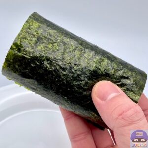 お召し上がり方を見て、ごはんに海苔を巻きます。