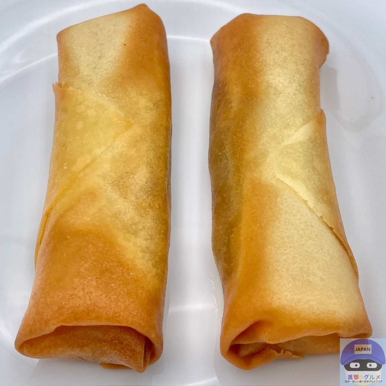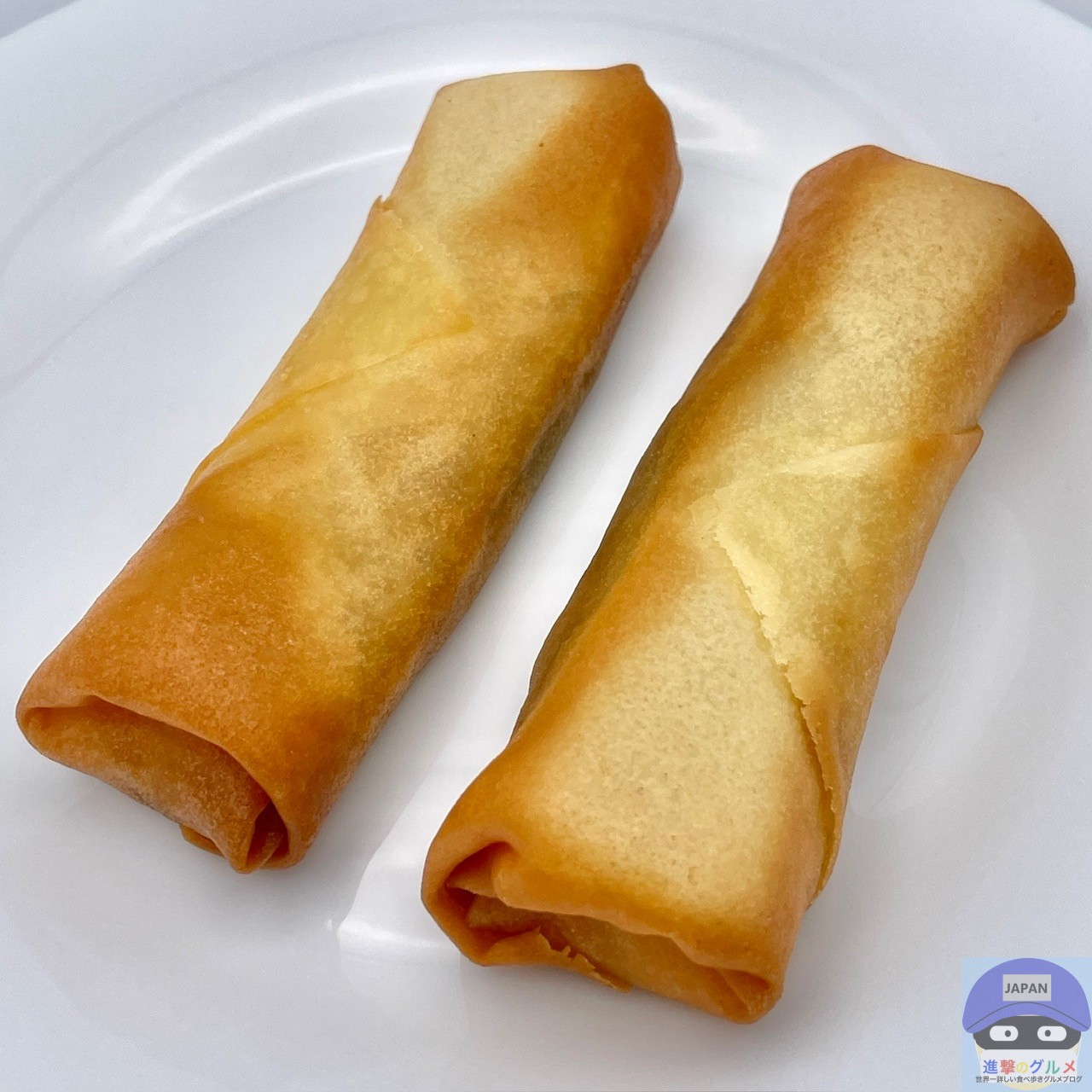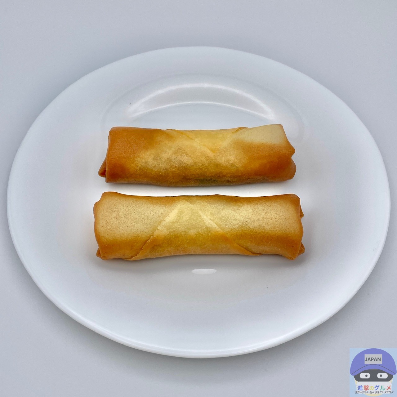 開封すると、具材を皮で包んだシンプルな見た目の五目春巻・2個です。