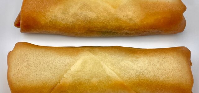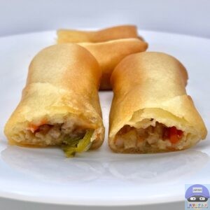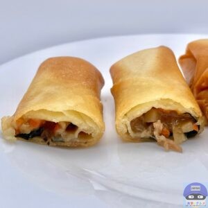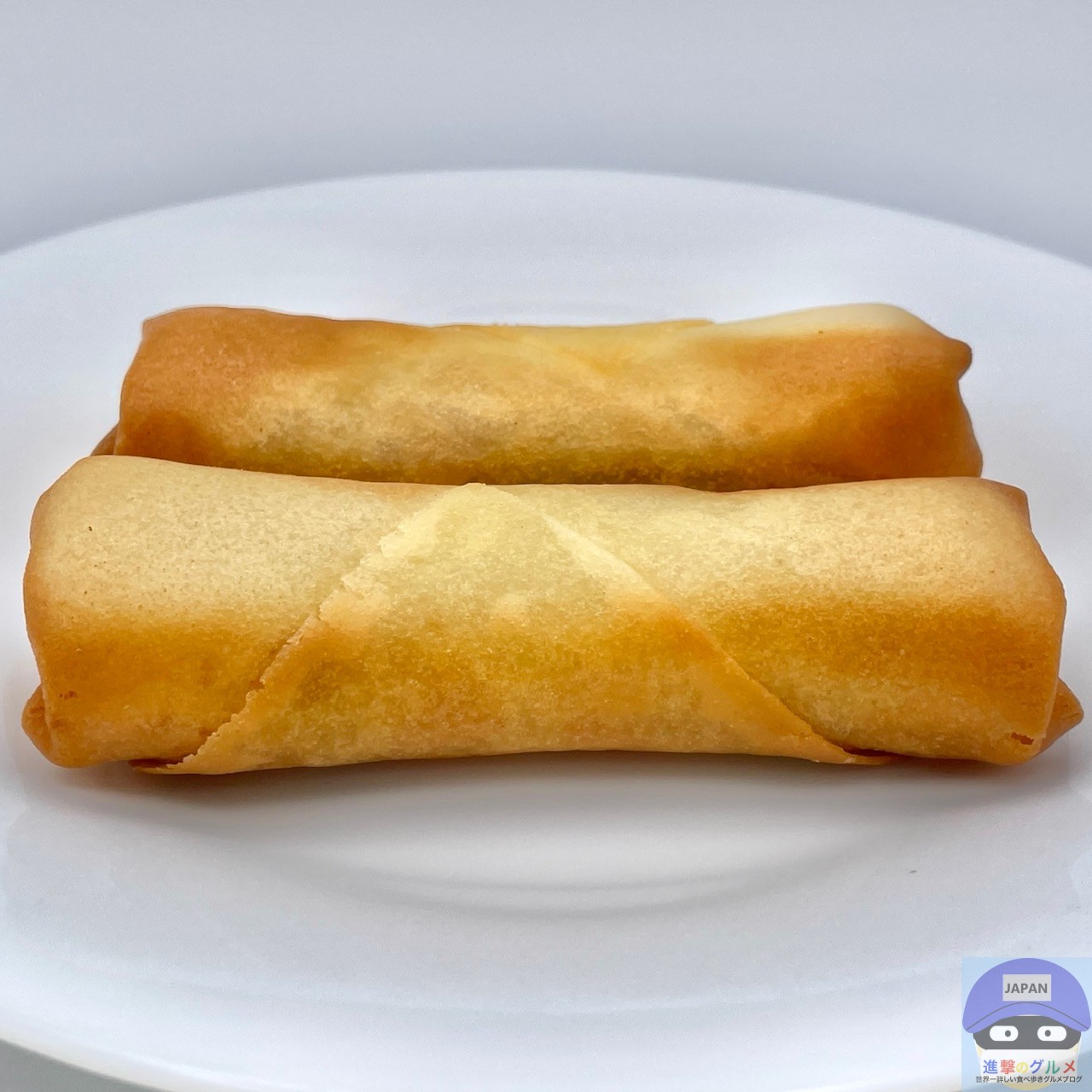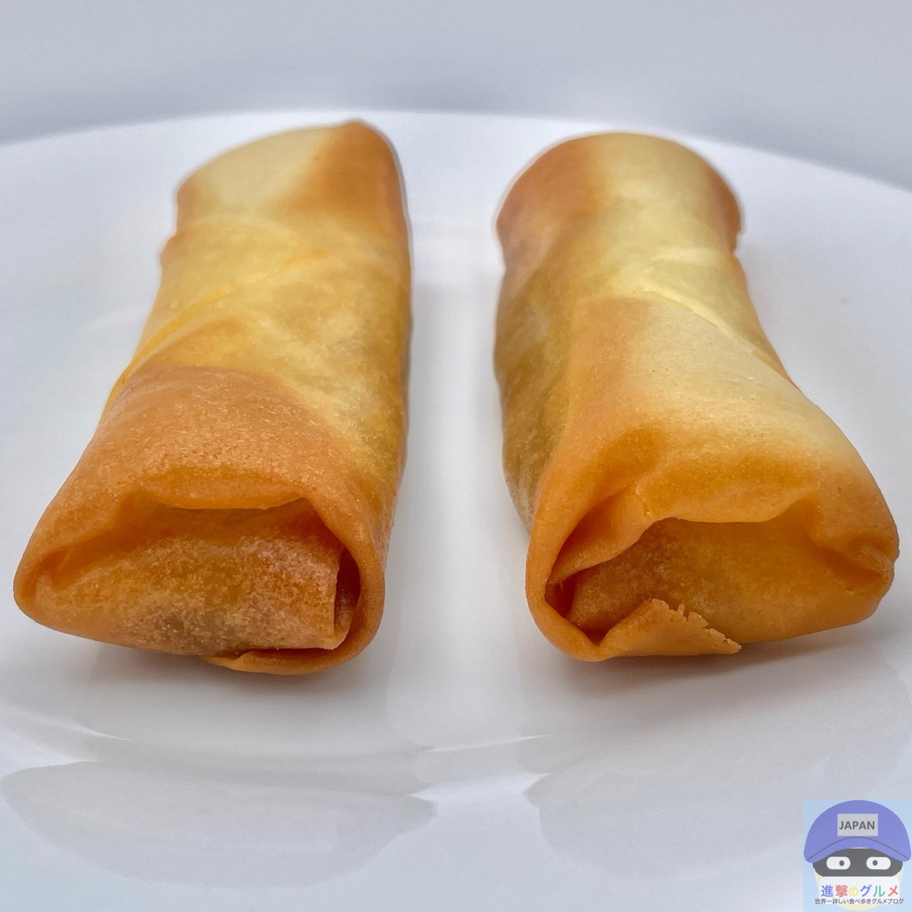開封すると、具材を皮で包んだシンプルな見た目の五目春巻・2個です。