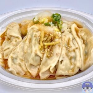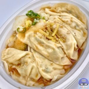 柚子の風味が香るポン酢をかけて食べる仕立ての水餃子です。
