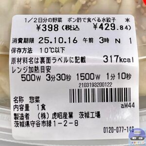 2025年10月14日、セブンイレブンが新作チルド惣菜「1/2日分の野菜 ポン酢で食べる水餃子(429円)」を発売しました。