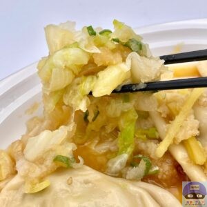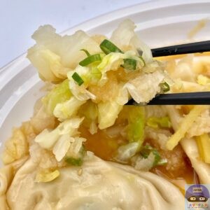 つるんと程よくもっちり柔らかめの皮でジュワッとジューシー、シャキッとキャベツの甘み、にんにくの旨み、ニラの風味を感じます。