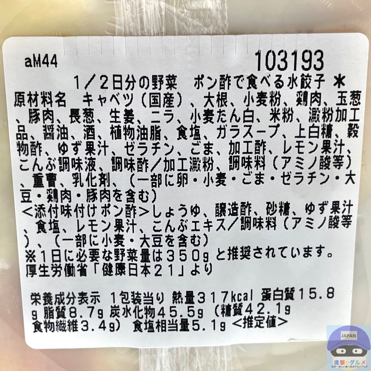 今回は、セブンイレブンのチルド惣菜「1/2日分の野菜 ポン酢で食べる水餃子」を世界一詳しく調査しました。