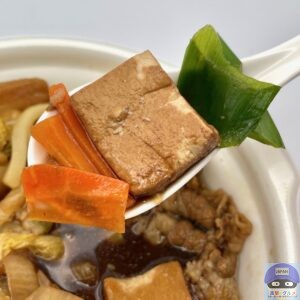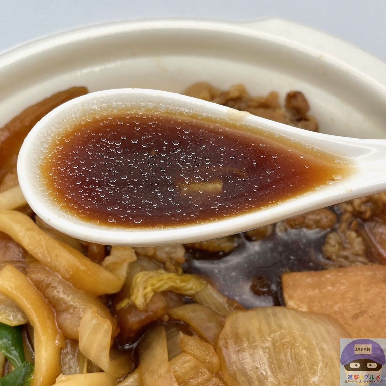 具だくさんで色合い良く、甘辛いスープの香りが食欲をそそります。