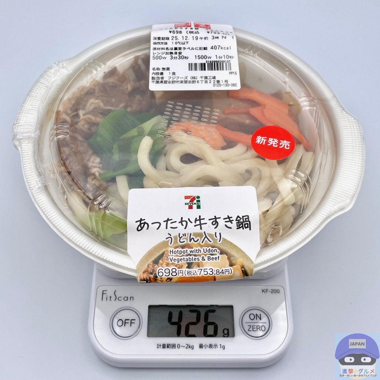 カロリーは407kcal、重さは容器を含めて426gです。