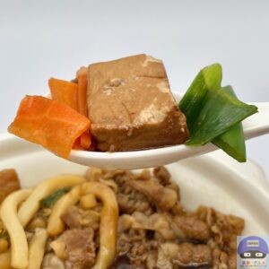 程よく柔らかい肉質で牛肉の旨味と脂身の甘みを感じ、すき焼き味の割下スープがよくしみています。