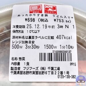 2025年12月16日、セブンイレブンが新作チルド惣菜「あったか牛すき鍋 うどん入り(753円)」を発売しました。