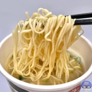 個人的に、油で揚げていないノンフライ麺ですが、少し油揚げ麺のような味わいを感じました。