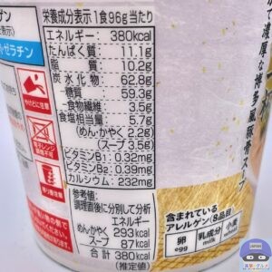 内容量は96g(めん70g)、カロリーは380kcalです。