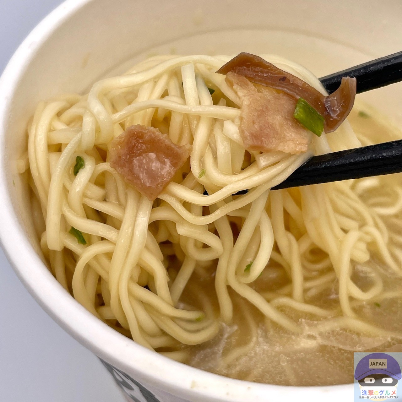 熱々ずるっと、程よく歯ごたえのあるノンフライ麺自体の味わいを感じます。
