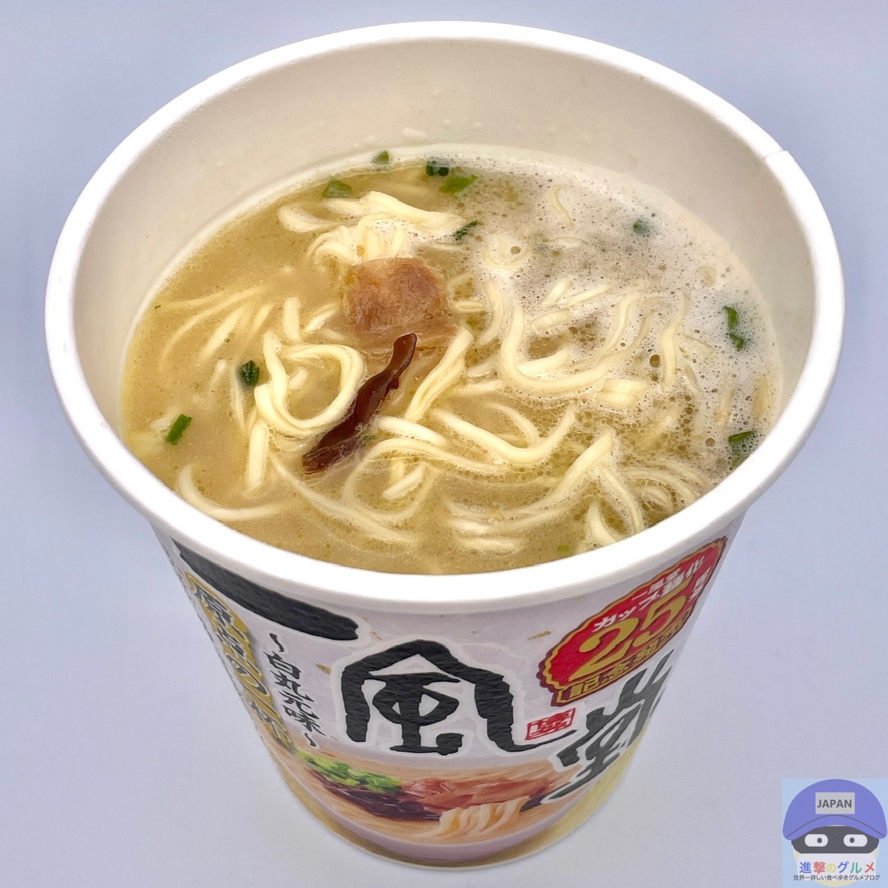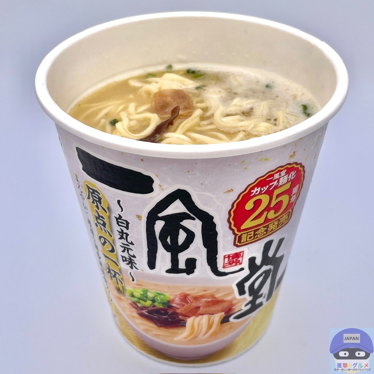 一風堂カップラーメン発売25周年を記念し、一風堂の看板メニューの一つである”白丸元味”を再現したカップ麺です。