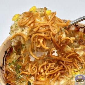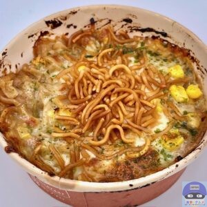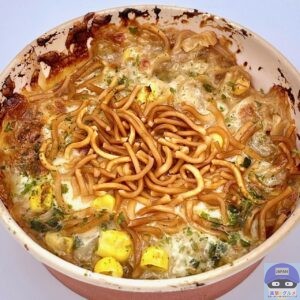 「東京うまいものフェア」の新商品、ベビースターとチーズを組み合わせた人気の仕立て、東京名物のもんじゃ焼きです。