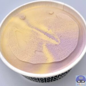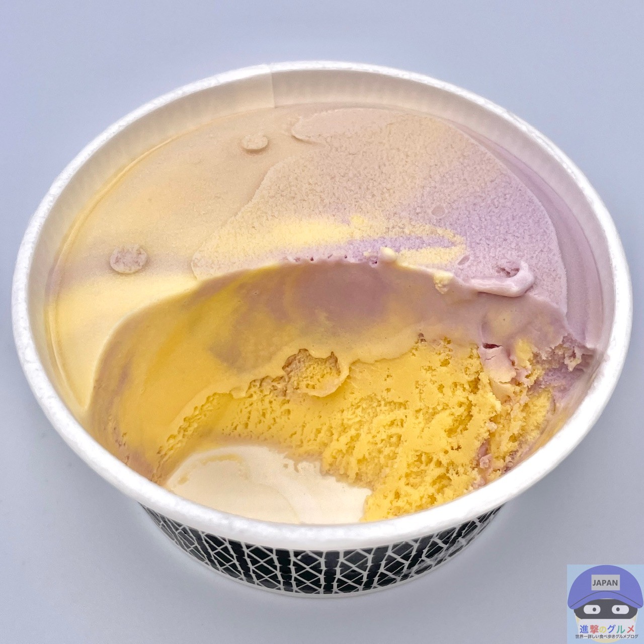 紫いもを使用したスイートポテト風アイスと、かぼちゃペーストを使用したかぼちゃアイスを組み合わせた特別なカップアイスです。