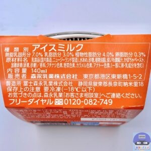 種類別はアイスミルク、内容量140ml、カロリー205kcalです。