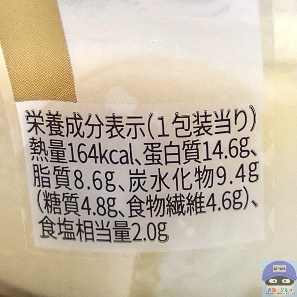 カロリーは164kcal、重さは容器を含めて146gです。