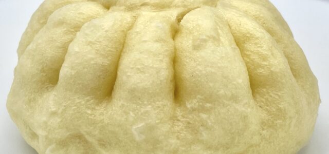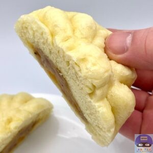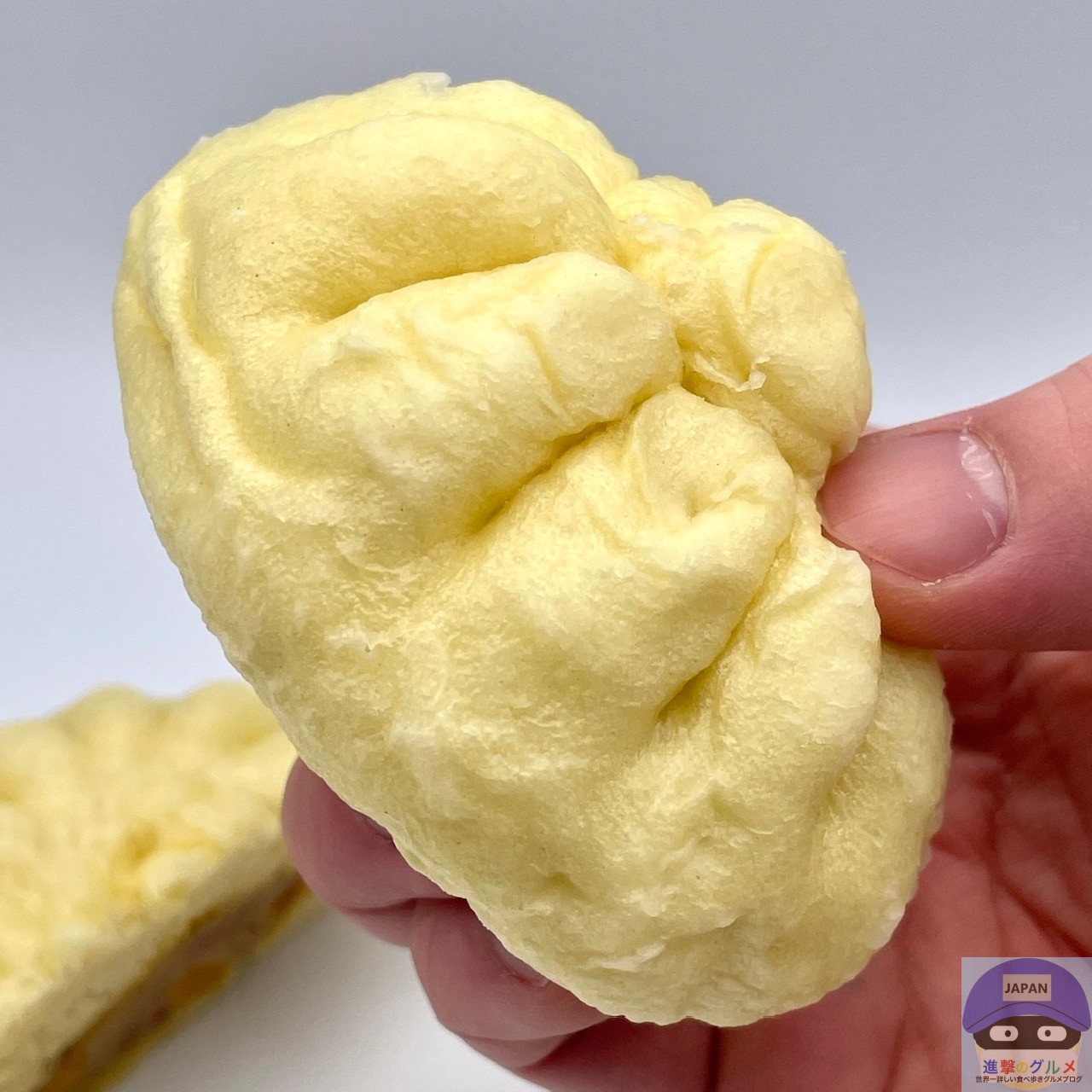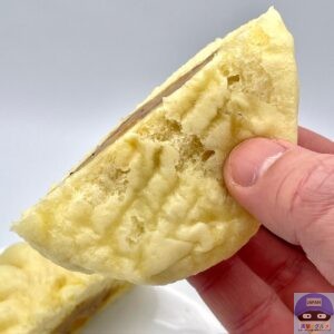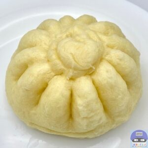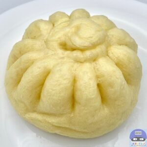 開封すると、黄色い生地が魅力的、シンプルな見た目のコンビニ中華まんです。