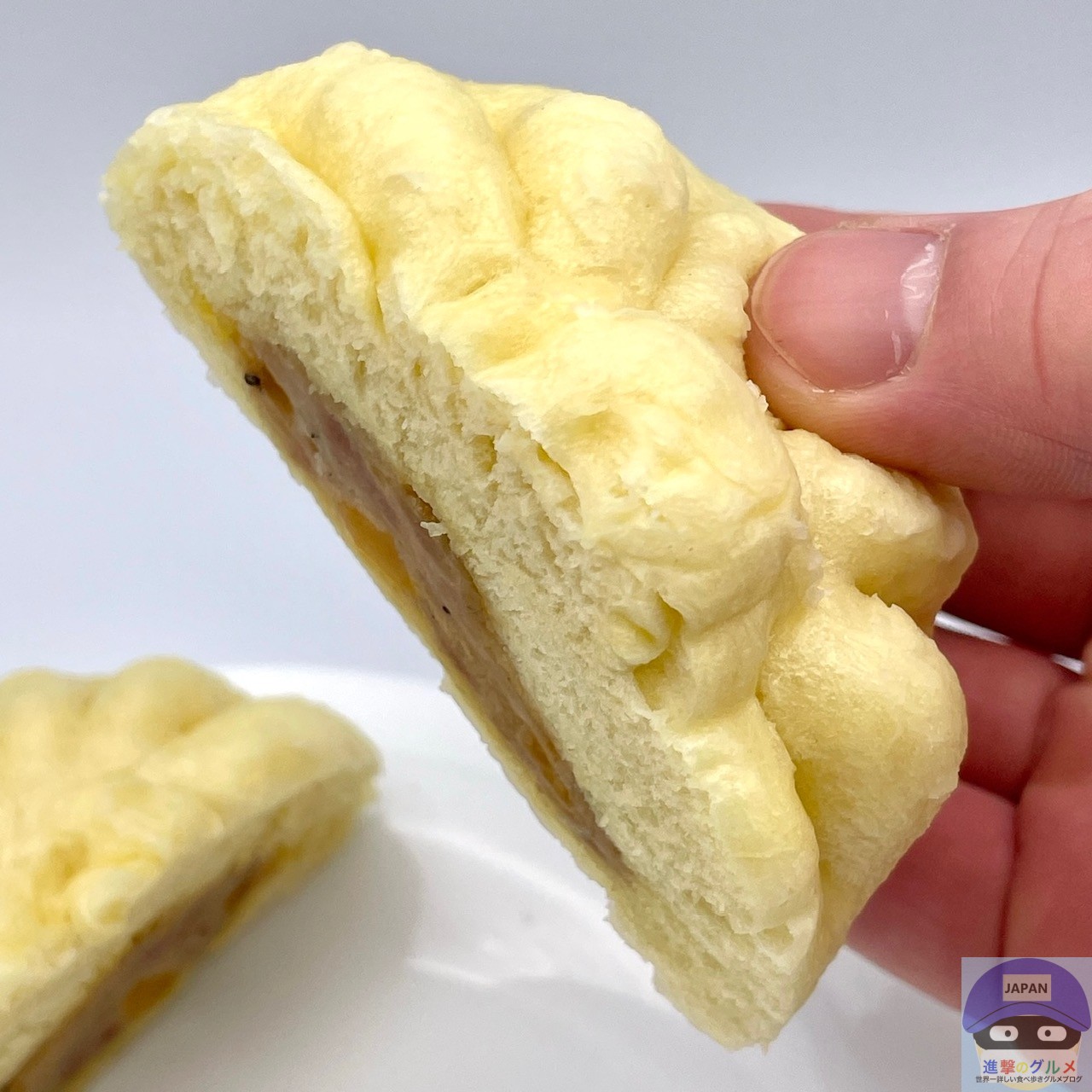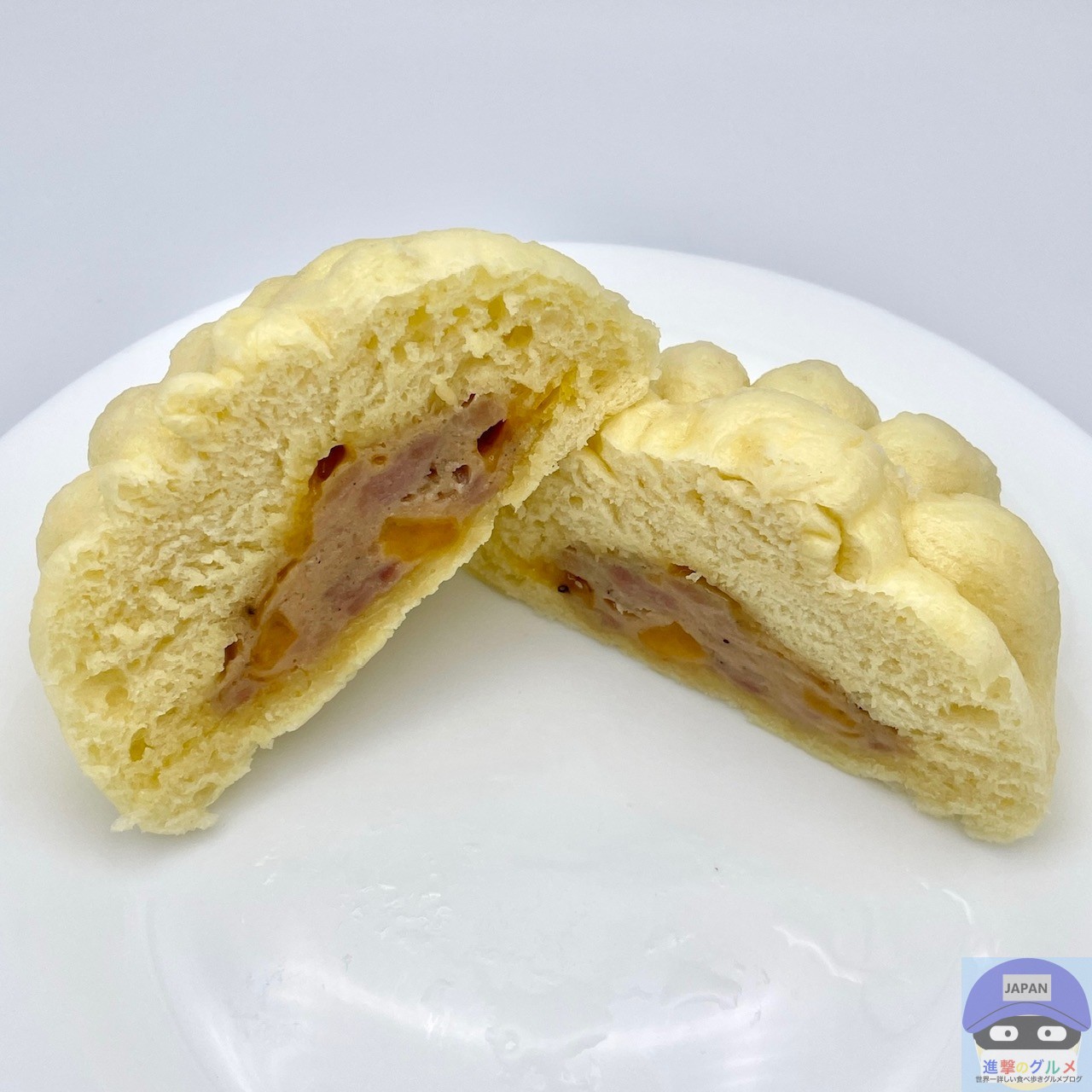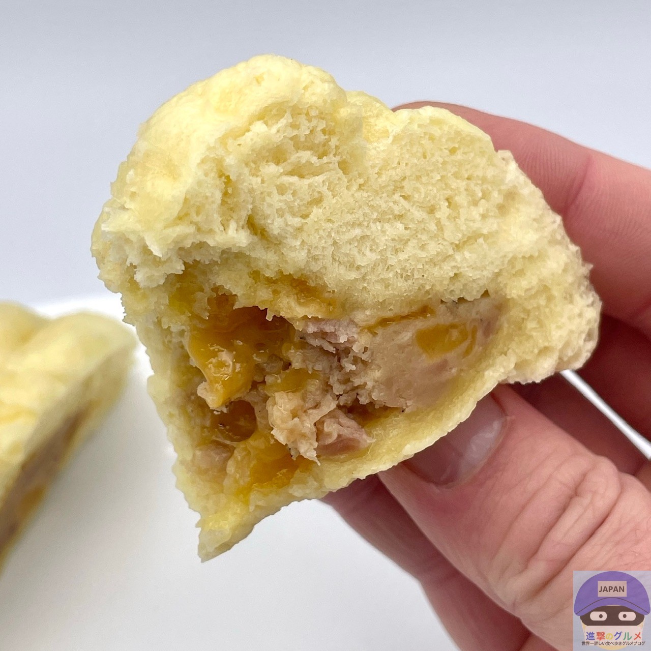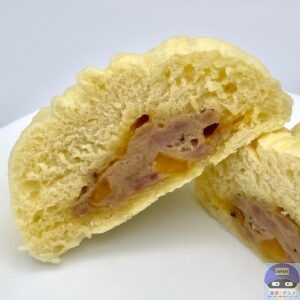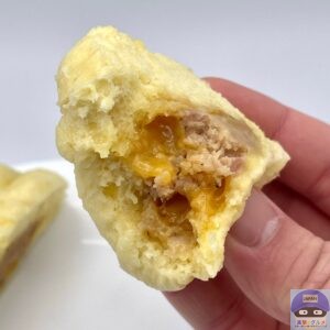 馴染みの肉まんの食感で程よい食べごたえ、レッドチェダーチーズが多めのコクのある旨味がクセになります。