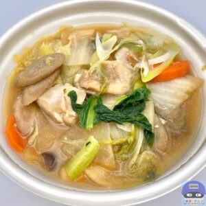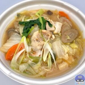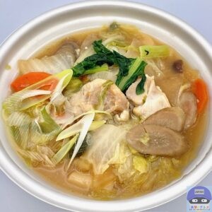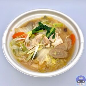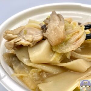 具材は、鶏肉・白菜・大根・ねぎ・にんじん・ごぼう・小松菜・ぶなしめじが入って、みそ汁のような良い香りがします。