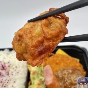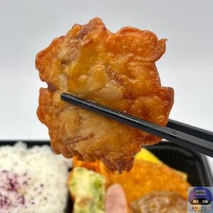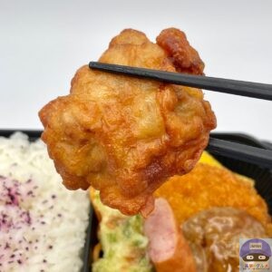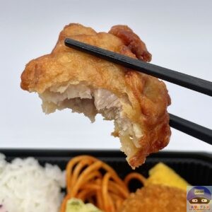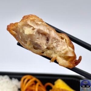 衣の一部分がネチャッとして塩気強め、一応にんにく醤油味の味付け、ジューシー系ではない肉質です。
