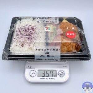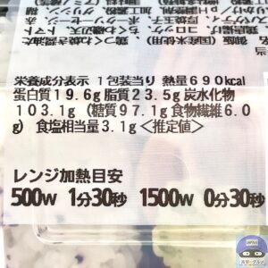 カロリーは690kcal、重さは容器を含めて357gです。