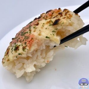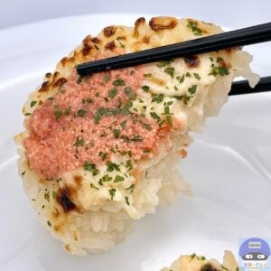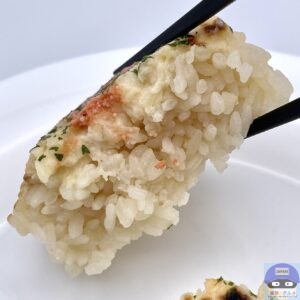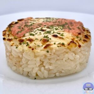 ブイヨンの旨みが染み込んだご飯に、ホワイトソースと明太子をのせて焼き上げた「コンビニおにぎり」です。