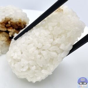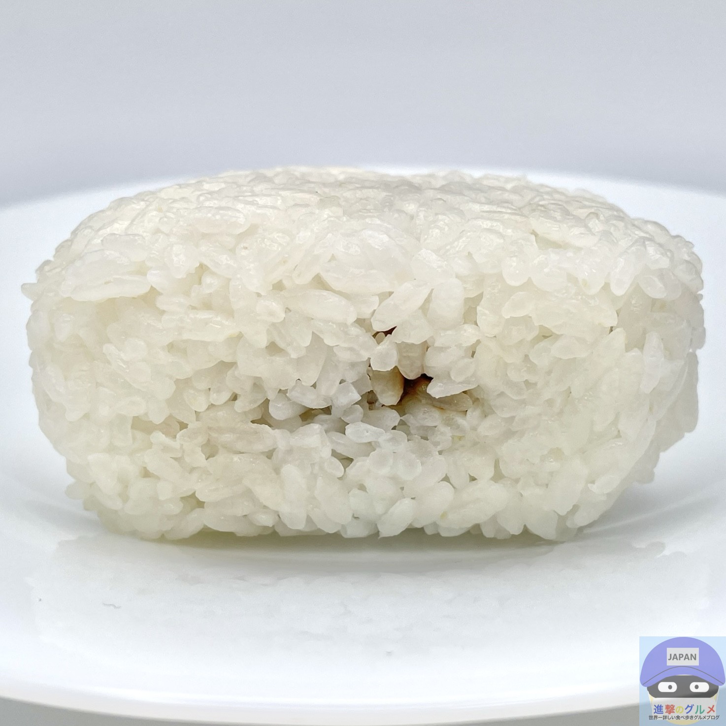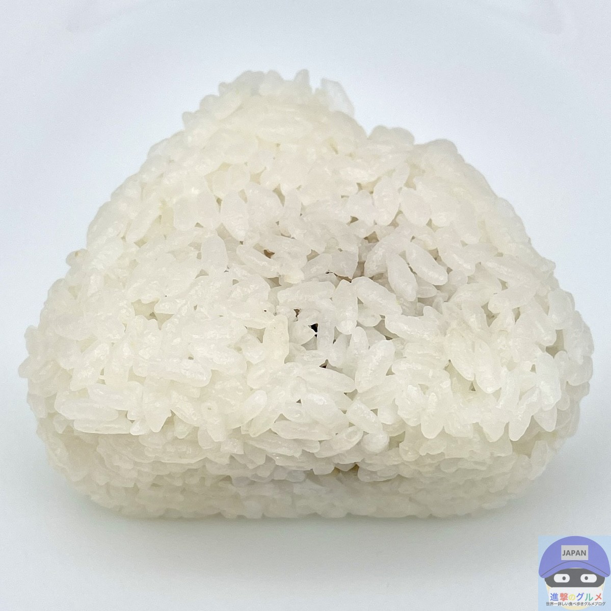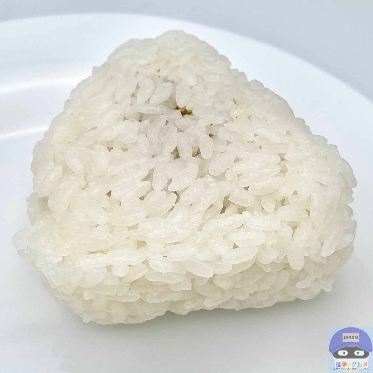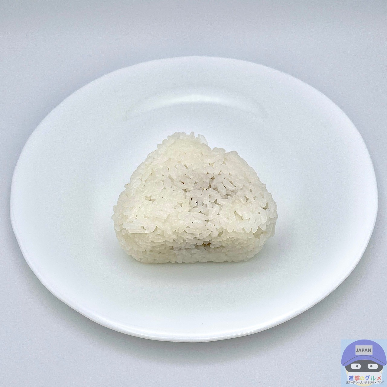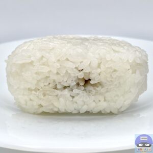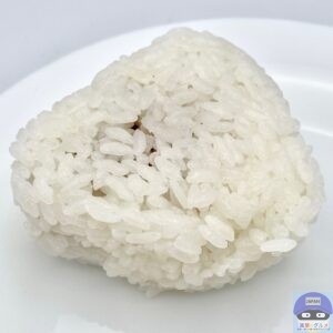 国産米使用、シンプルで寂しい見た目の海苔無しおにぎりです。