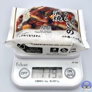 カロリーは213kcal、重さは包装を含めて119gです。