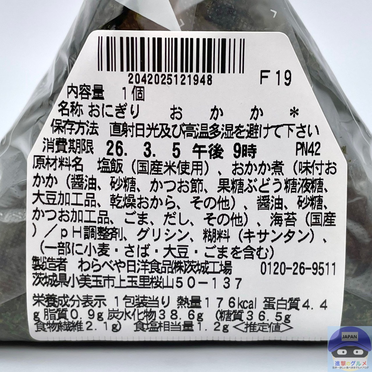 カロリーは176kcal、重さは包装を含めて110gです。