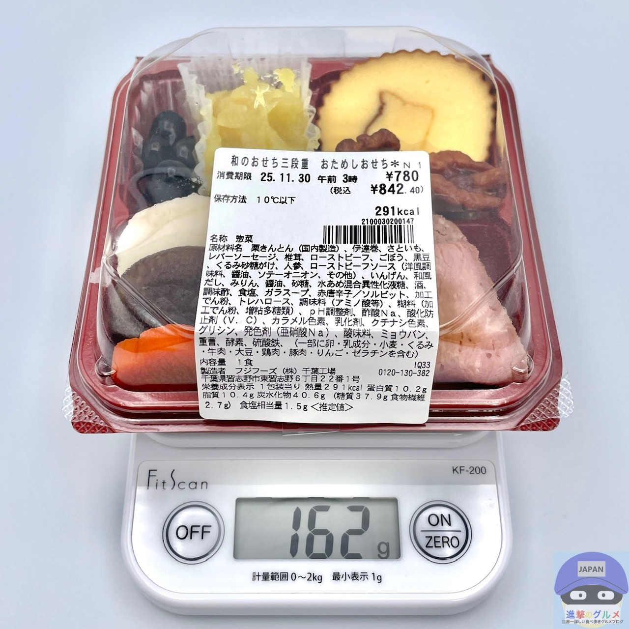 カロリーは291kcal、重さは容器を含めて162gです。